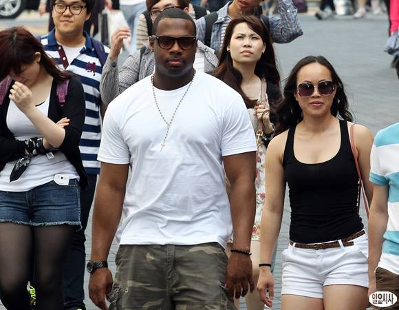 때이른 무더위가 계속된 24일 오후 서울 명동거리에 외국인들이 썬글라스를 쓰고 걸음을 재촉하고 있다.