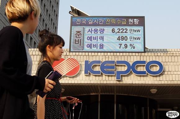 연일 계속되는 더위에 전력경보 1단계인 '준비'가 발령된 7일 서울 삼성동 한국전력공사 앞 전광판이 현재 전력수습 상황을 표시하고 있다.