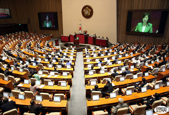 진보정의당 심상정 원내대표가 11일 오전, 국회 대정부 질문에 앞서 비교섭단체 대표연설을 하고 있다.
