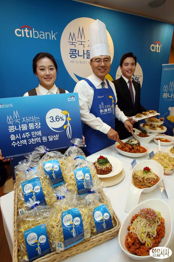 하영구 한국씨티은행장이 콩나물 통장의 수신액 3000억원 돌파를 기념해 18일 서울 중구 씨티은행 본사에서 직원들에게 줄 점심을 만들고 있다.