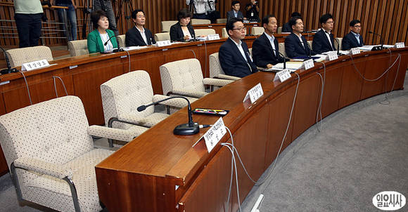 9일 국회에서 열린 공공의료 정상화를 위한 국정조사 특위 회의에서 홍준표 경남지사를 비롯한 경남도 공무원 7명이 불출석한 가운데 최문순 강원도지사를 비롯한 강원도 관련 증인들만 출석해 있다.