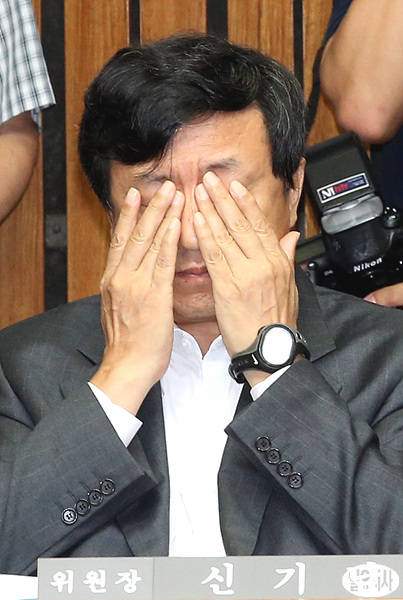 14일 오전 국회에서 국가정보원 댓글의혹 사건 등의 진상규명을 위한 국정조사청문회가 열리고 있는 가운데, 민주당 신기남 국조특위 위원장이 피곤한 듯 얼굴을 쓸어내리고 있다.