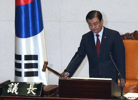 강창희 국회의장이 2일 오후, 정기국회 회기 결정의 건을 상정하며 의사봉을 두드리고 있다.