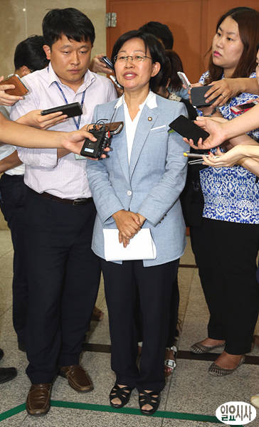3일 오후, 통합진보당 김미희 의원이 같은 당 이석기 의원의 체포동의안 처리와 관련해 기자회견 후 취재진들의 질문에 답하고 있다.