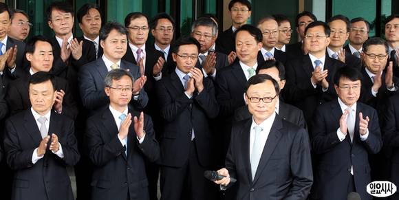 채동욱 검찰총장이 30일 오전 서울 서초동 대검찰청에서 열린 퇴임식을 마친 뒤 직원들에게 박수를 받으며 떠나고 있다.