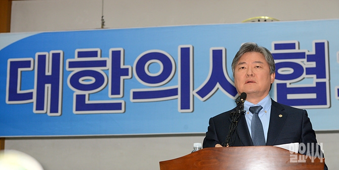 9일 오후, 노환규 대한의사협회 회장이 서울 용산구 이촌로 의협회관에서 집단휴진 결정의 당위성을 설명하고 국민들의 이해를 당부하는 '대국민 호소문'을 발표하고 있다.