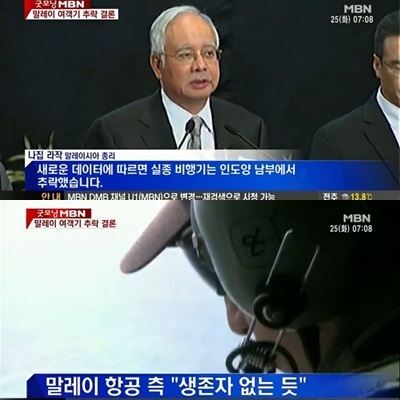 나집 라작 말레이시아 총리는 전날 저녁 쿠알라룸푸르 푸트라월드트레이드센터(PWTC)에서 긴급 기자회견을 열고 "영국 국제해사위성기구(Inmarsat)의 위성자료를 바탕으로 370편이 인도양 남부 해역에 추락한 것으로 결론지었다"고 밝혔고, 이른 시일 내 유족과 함께 여객기 추락 추정 해역을 돌아볼 것이라고 전했다.