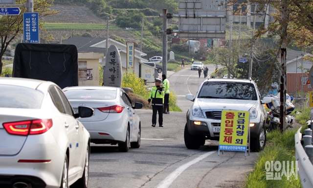 여객선 '세월호' 침몰 나흘째인 19일 경찰병력들이 전남 진도군 팽목항 입구 삼거리에서 실종자 가족이나 구조 관계자가 아닌 이들의 출입을 통제하고 있다.