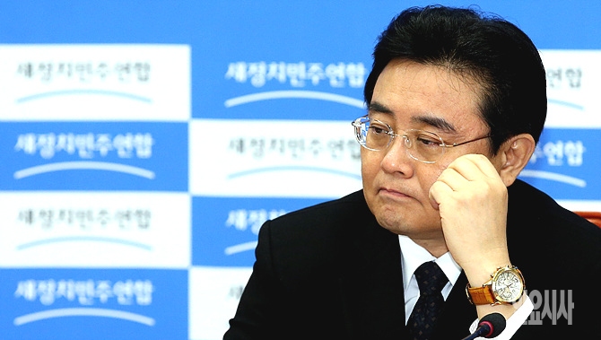 22일 오전, 서울 여의도 국회에서 새정치민주연합 세월호 관련 원내대책회의가 열린 가운데, 전병헌 원내대표가 잠시 고민에 빠져 있다.