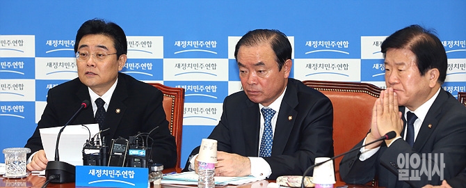 22일 오전, 서울 여의도 국회에서 새정치민주연합 세월호 관련 원내대책회의가 열린 가운데, 전병헌 원내대표가 발언하고 있다.