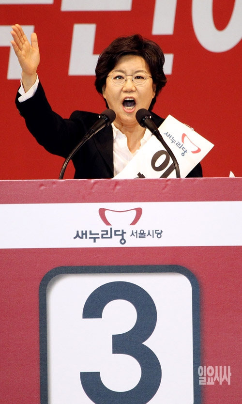 이혜훈 새누리당 서울시장 예비후보가 12일 서울 방이동 올림픽공원 체조경기장에서 열린 2014 전국동시지방선거 새누리당 서울시장 후보자 선출대회에서 정견 발표를 하고 있다.