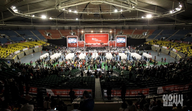 2014 전국동시지방선거 새누리당 서울시장 후보자 선출대회가 열린 12일 서울 방이동 올림픽공원 체조경기장에서 당원들이 투표를 하고 있다.