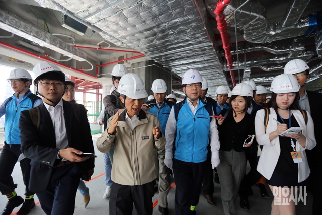 박원순 서울시장이 13일 서울 송파구 신천동 제2롯데월드 신축공사 현장을 방문해 안전점검을 하고 있다.