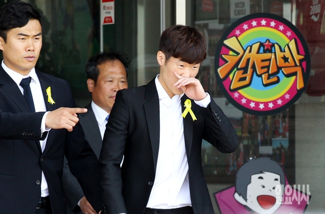 '영원한 캡틴' 박지성이 14일 경기도 수원 박지성축구센터에서 공식 은퇴 선언 및 김민지 아나운서와의 결혼계획 기자회견을 갖기 위해 들어서고 있다.