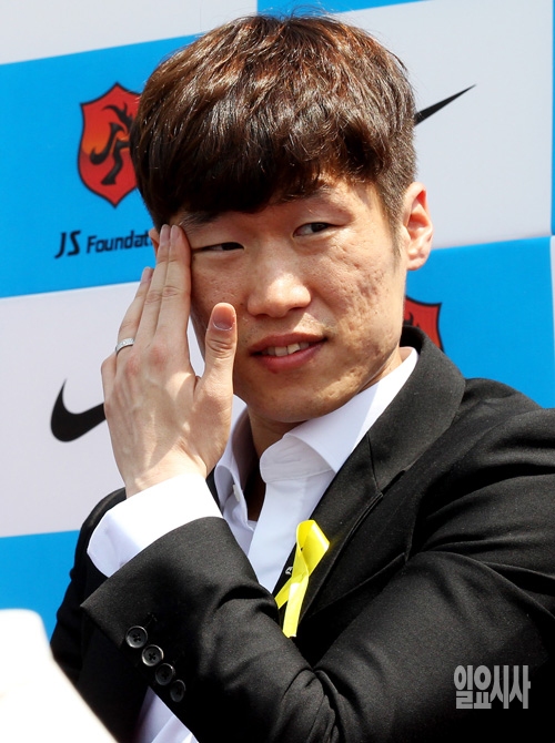 '영원한 캡틴' 박지성이 14일 경기도 수원 박지성축구센터에서 공식 은퇴 선언 및 김민지 아나운서와의 결혼계획 기자회견을 갖고 있다.