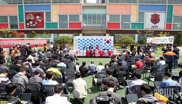 '영원한 캡틴' 박지성이 14일 경기도 수원 박지성축구센터에서 공식 은퇴 선언 및 김민지 아나운서와의 결혼계획 기자회견을 갖고 있다.