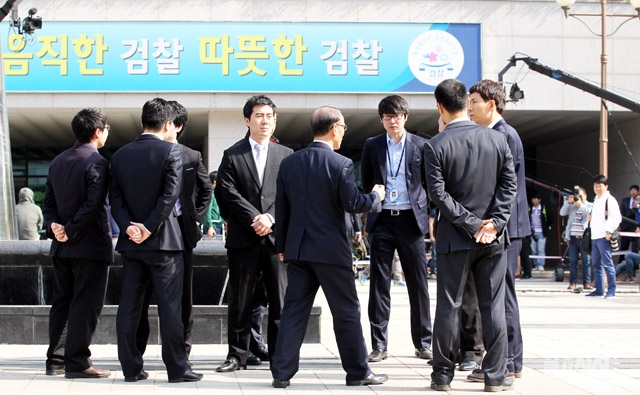 유병언 전 세모그룹 회장의 검찰 소환일인 16일 인천 남구 인천지방검찰청에서 검찰 관계자들이 유 전 회장의 출석을 기다리고 있다.