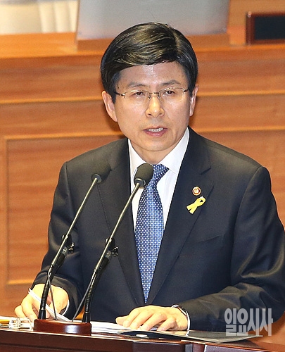 황교안 법무부장관이 20일, 서울 여의도 국회 본회의장에서 열린 세월호 침몰사고 긴급현안질문에서 의원들의 질의에 답변하고 있다.