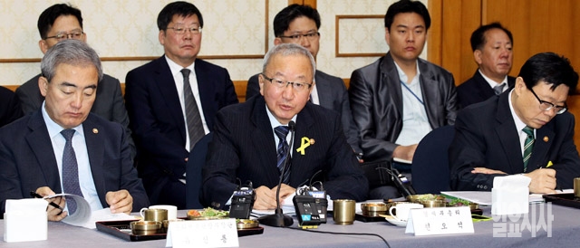 현오석 부총리 겸 기획재정부 장관(가운데)이 21일 서울 여의도 국회 귀빈식당에서 열린 민생경제활성화 당정협의회에서 모두발언을 하고 있다.