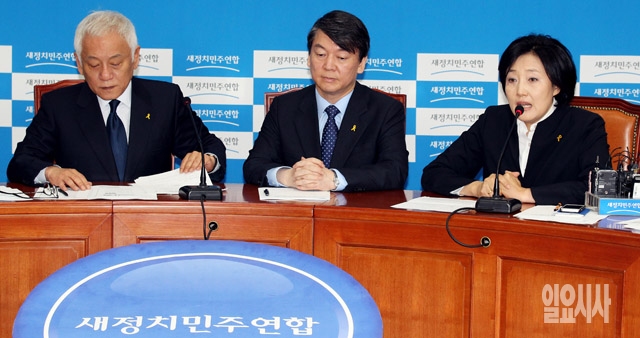 박영선 새정치민주연합 원내대표(맨 오른쪽)가 21일 서울 여의도 국회에서 열린 전국 시도당위원장 연석회의에서 모두발언을 하고 있다.