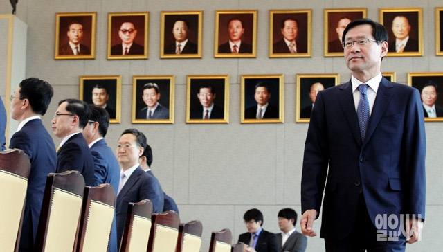 김진태 검찰총장이 21일 서울 서초동 대검찰청에서 열린 이른바 '관피아'로 불리는 민·관 유착 비리 척결을 위한 전국 검사장 회의에 참석하고 있다.