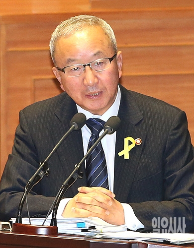 21일, 현오석 경제부총리 겸 기획재정부 장관이 서울 여의도 국회 본회의장에서 열린 세월호 참사 관련 긴급현안질의에서 의원들의 질문에 답변하고 있다.