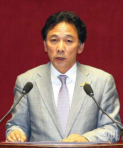 21일, 정의당 정진후 의원이 서울 여의도 국회 본회의장에서 열린 세월호 참사 관련 긴급현안질의에서 국무위원들에게 질의하고 있다.