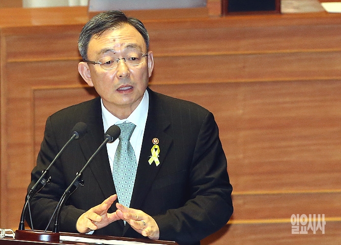 21일, 최성준 방통위원장이 서울 여의도 국회 본회의장에서 열린 세월호 참사 관련 긴급현안질의에서 의원들의 질문에 답변하고 있다.