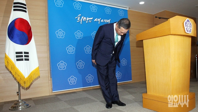 안대희 국무총리 내정자가 22일 서울 세종로 정부서울청사에서 총리 내정 소감 발표에 앞서 인사하고 있다.