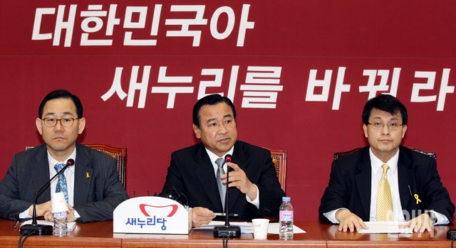 이완구 새누리당 비상대책위원장 겸 원내대표(가운데)가 23일 서울 여의도 국회에서 열린 비상대책위원회의에서 모두발언을 하고 있다.