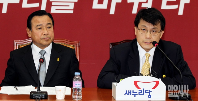 윤상현 새누리당 사무총장(오른쪽)이 23일 서울 여의도 국회에서 열린 비상대책위원회의에서 모두발언을 하고 있다.