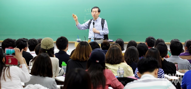 박원순 새정치민주연합 서울시장 후보가 29일 서울 동작구 노량진의 한 공무원 학원을 방문해 학생들에게 특강을 하고 있다.