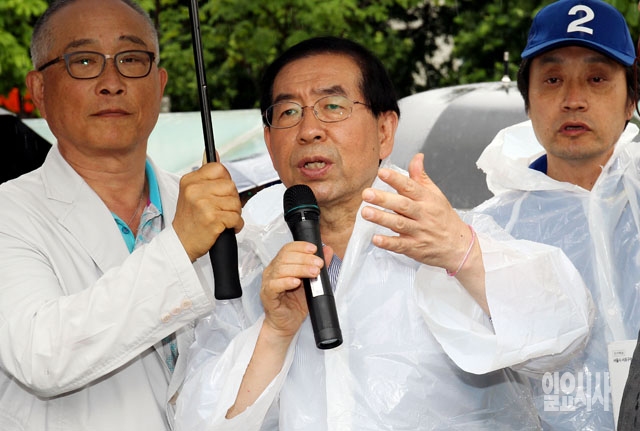 박원순 새정치민주연합 서울시장 후보가 3일 서울 서초구 잠원동을 찾아 시민들에게 지지를 호소하고 있다.