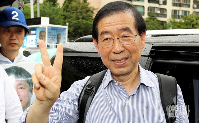 박원순 새정치민주연합 서울시장 후보가 3일 서울 서초구 잠원동을 찾아 시민들에게 인사를 건네며 지지를 호소하고 있다.