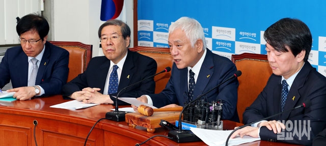 김한길 새정치민주연합 공동대표(오른쪽에서 두번째)가 5일 서울 여의도 국회에서 열린 최고위원회의에서 모두발언을 하고 있다.