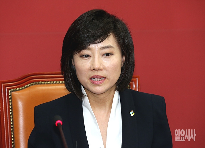 16일 오후, 조윤선 청와대 신임 정무수석이 서울 여의도 국회 새누리당 원내대표실을 찾아 이완구 원내대표와의 예방 도중 발언하고 있다.