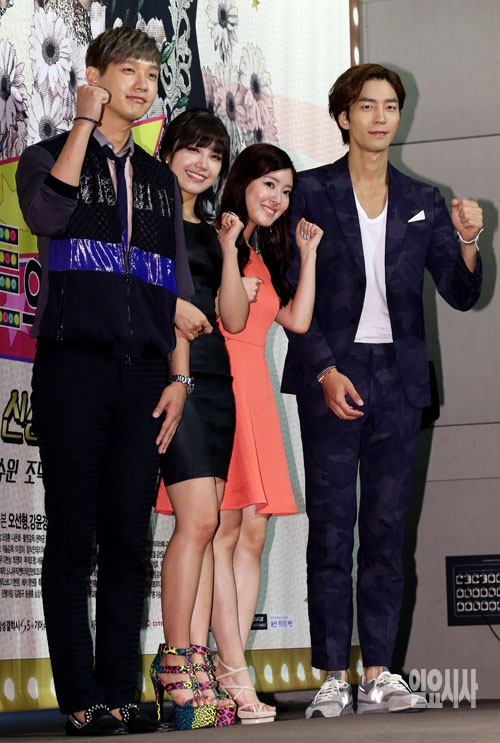 10일 서울 중구 장충동 그랜드 앰버서더호텔에서 열린 KBS 2TV 새 월화드라마 '트로트의 연인'(연출 이재상 이은진, 극본 오선형) 제작발표회에서 배우 지현우(왼쪽부터), 정은지, 이세영, 신성록이 포토타임을 갖고 있다.