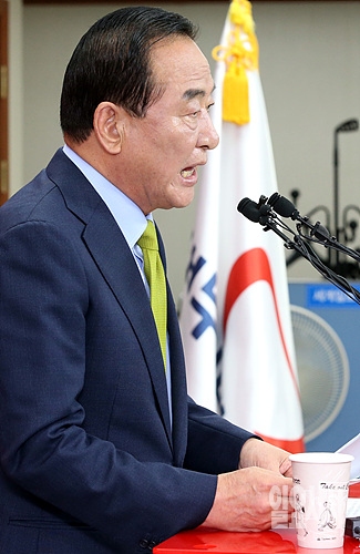 19일, 서울 여의도 새누리당 당사에서 친박(친 박근혜)계 맏형으로 평가받는 서청원 의원이 당 대표를 선출하는 7·14전당대회 출마를 공식선언하고 있다.