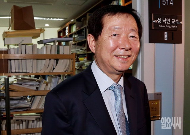 서울대학교 차기 총장 최종후보로 선출된 성낙인 법학전문대학원 교수가 19일 서울대학교 자신의 교수실에서 밝게 웃고 있다.