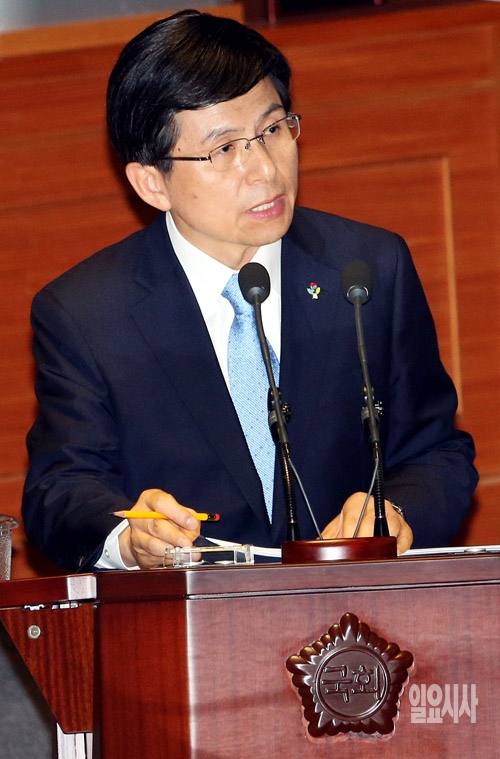 황교안 법무부 장관이 20일 서울 여의도 국회에서 열린 본회의에서 교육ㆍ사회ㆍ문화 분야 대정부질문에 관한 답변을 하고 있다.