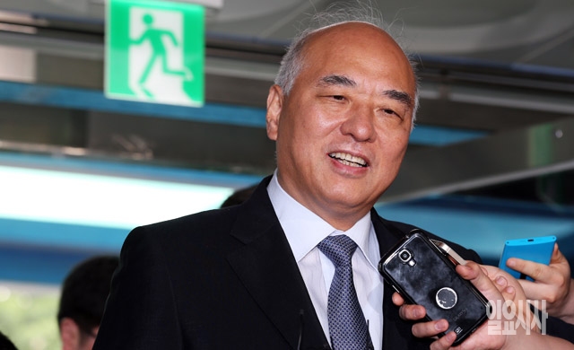 문창극 국무총리 후보자가 24일 서울 종로구 정부서울청사 창성동 별관으로 출근하고 있다. 이날 문 후보자는 기자회견을 갖고 국무총리 후보직을 자진 사퇴했다.