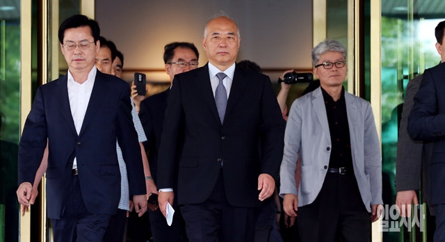 문창극 국무총리 후보자가 24일 서울 종로구 정부서울청사에서 자진 사퇴 기자회견을 마치고 청사를 나서고 있다.