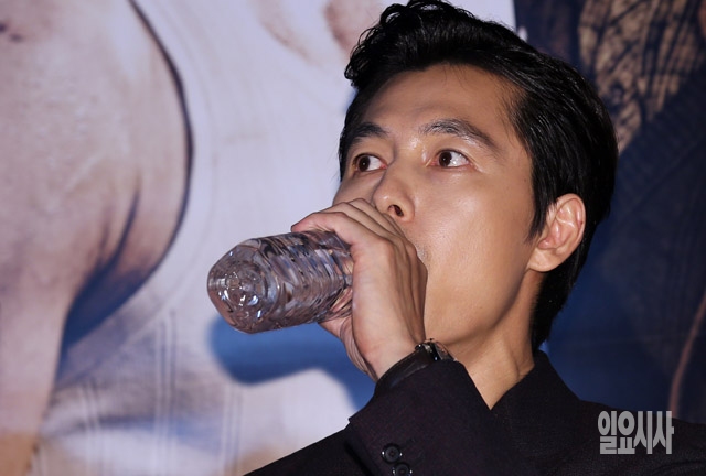 배우 정우성이 24일 서울 메가박스 동대문점에서 열린 영화 '신의 한 수'(감독 조범구) 언론시사회에서 물을 마시고 있다.