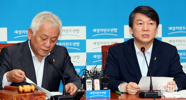 안철수 새정치민주연합 공동대표(오른쪽)가 2일 서울 여의도 국회에서 열린 최고위원회의에서 모두발언을 하고 있다.