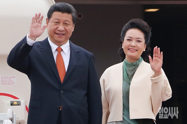 시진핑 중국 국가주석과 부인 펑리위안이 3일 경기도 성남 서울공항을 통해 입국하고 있다.