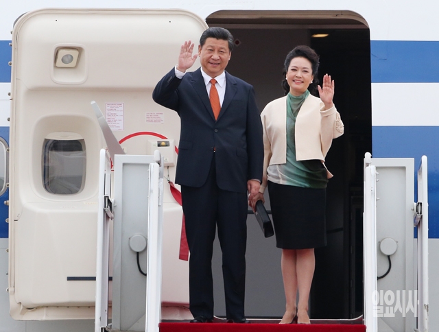 시진핑 중국 국가주석과 부인 펑리위안이 3일 경기도 성남 서울공항을 통해 입국하고 있다.