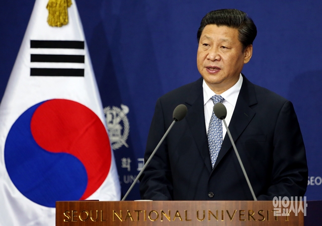 시진핑 중국 국가주석이 4일 서울대학교 글로벌공학교육센터에서 한중 우호 관계와 동북아 협력에 관한 강연을 하고 있다.