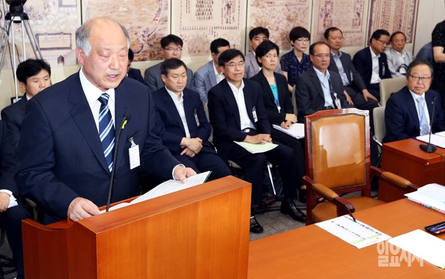 김명수 사회부총리 겸 교육부 장관 후보자가 9일 서울 여의도 국회 교육문화체육관광위원회에서 열린 인사청문회에서 모두발언을 하고 있다.