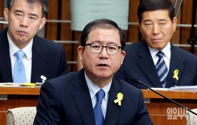 이성한 경찰청장이 9일 서울 여의도 국회에서 열린 세월호침몰사고진상규명국정조사 특별위원회 전체회의에서 의원들의 질의에 답하고 있다.