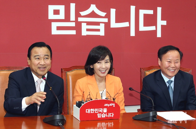 [포토] 웃음 짓는 이완구-나경원-김재원